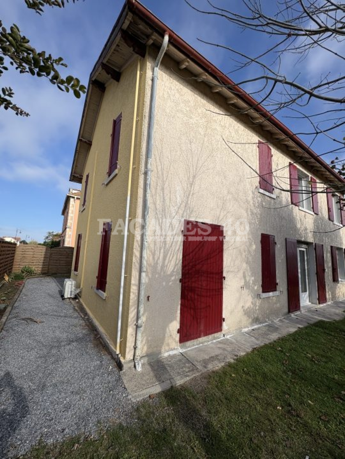Nous avons donc préconisé un ratissage de la façade avec bien sûr un enlèvement manuel des peintures non adhérentes avant d’appliquer le revêtement de finition dans la teinte souhaitée par les clients.