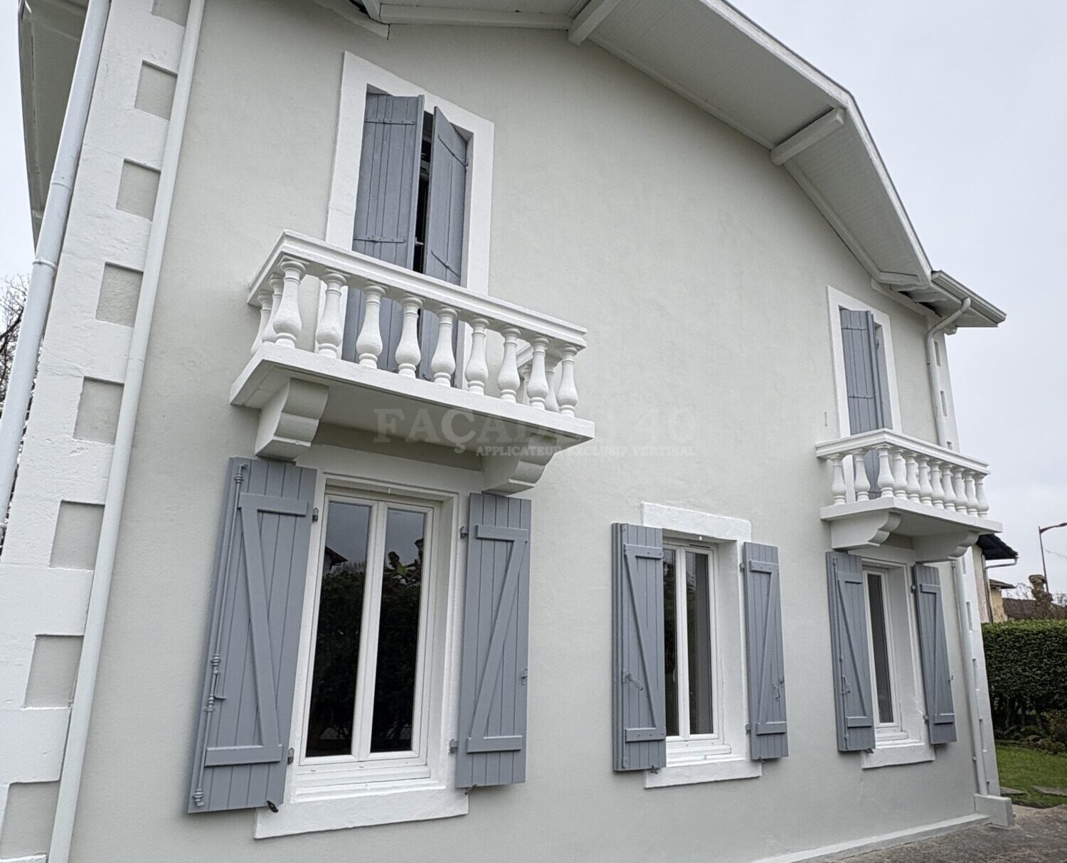 Je souhaitais refaire l'ensemble des façades de ma maison à Castets car il y avait des fissures, des modifications d'ouverture et une couleur rose qui ne me plaisait pas. J'ai donc fait appel à l'entreprise FAÇADES 40 pour repeindre les façades de ma maison en blanc. Ils ont fait des reprises d'enduit ponctuelles et appliqué le revêtement VERTIKAL® comme convenu au devis. Je suis satisfaite du personnel et du résultat de ce ravalement de façade. Je recommande l'entreprise FAÇADES 40.