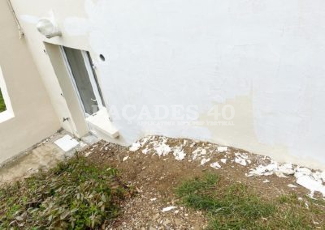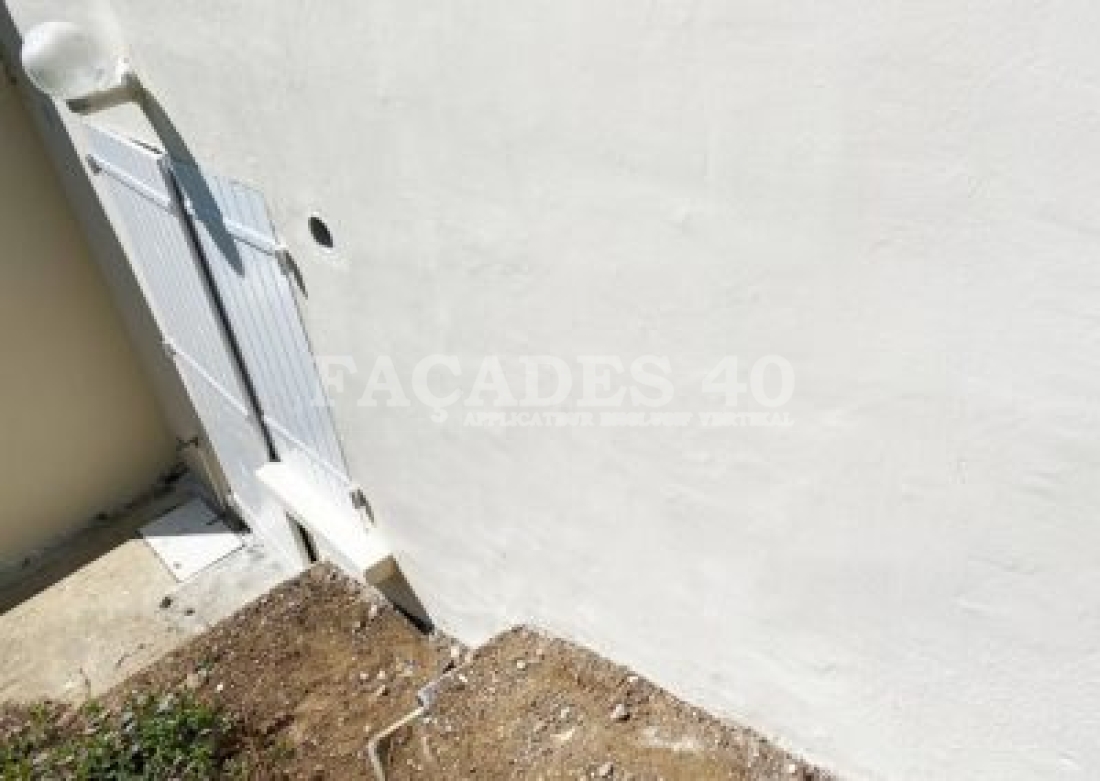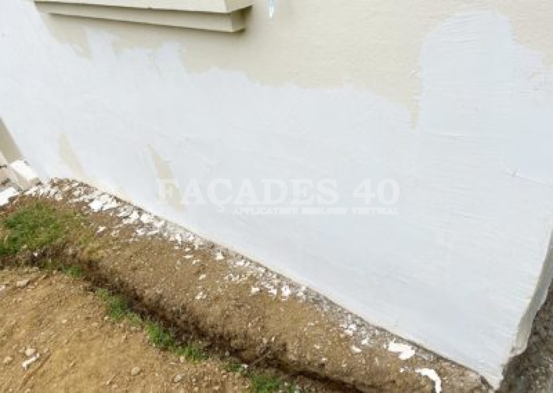 Comme la façade arrière de la maison comportait pas mal de défauts en pied de mur du à l’arrivée des eaux pluviale nous avons conseillé au client de faire réaliser un drainage de cette eau qui arrive contre le mur car la maison se trouve en contre bas d’une pente à l’arrière. Nous avons aussi proposé d’utiliser deux produits différents afin de respecter son budget.