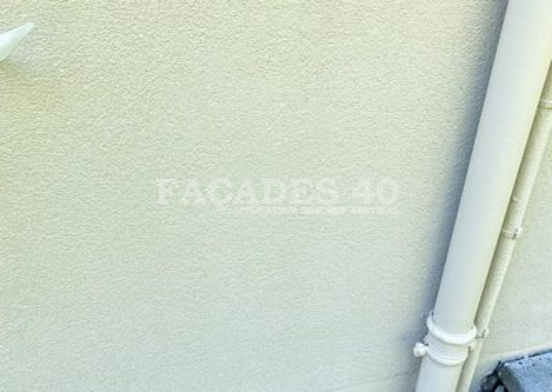 Pour la partie arrière et donc la plus abimé nous avons utilisé le VERTIQUARTZ GT 50 sur l’ensemble de la façade cet enduit résine nous permet de rattraper les défauts de planimétrie et d’avoir un aspect crépis sur le mur tout en étant imperméable aux eaux de pluie et chose très importante ici en particulier il laisse respirer le mur car il est micro-poreux.